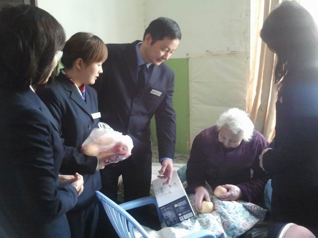 在敬老院,该站志愿者帮助老人整理床铺、清理物品,将事先准备好的牛奶、苹果等送给老人,聊家常、嘘寒暖,呈现出一份温馨和谐的氛围。通过定期慰问这种形式,让员工在社会服务中得到体验和感悟,逐渐培养尊老助老的良好品德和文明习惯,学会感恩,报答社会,使站员工真正感受到奉献爱心的意义和快乐。
