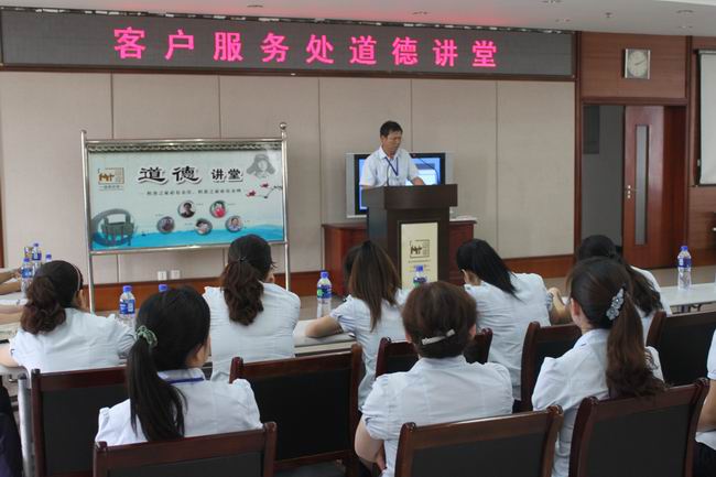 客户服务处旨在通过举办道德讲堂,培养职工的爱党爱国精神,教育员工知荣辱、讲正气、树新风、促和谐,不断凝聚正能量,营造“爱党爱国,诚实守信,敬业奉献,孝老爱亲”良好的风气。