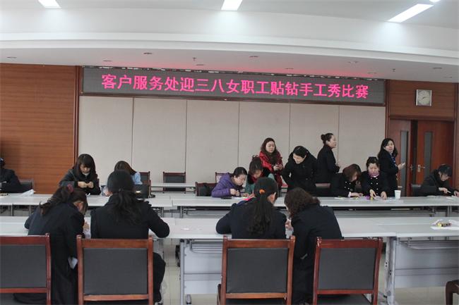 2014年3月7日,路桥中心客户服务处工会举办了迎“三·八”女职工“贴钻手工秀”比赛活动,处属各单位40余名女职工参加了比赛。中心副主任黄文红、纪委书记、工会主席赵凯和中心机关部室相关领导莅临现场进行了指导。