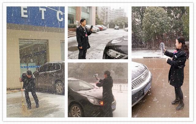 2月8日,正值农历腊月廿八,春节前最后一个工作日,天降瑞雪。“武汉ETC” 各服务网点工作人员仍坚守工作岗位,顶风冒雪,为前来办理ETC业务的车主提供热忱周到的服务,为车主朋友过个安心年、快乐年,履行着“车主至上”“服务至上”的神圣职责。