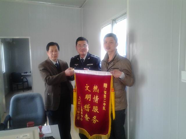 近日,一位手捧“文明稽查,热情服务”锦旗的车主来到新洲稽查服务点,他紧紧地握住稽查队员的手连声致谢。该车主负责的汽车服务中心购买了一批从事营运的新车,车辆较分散,集中安装的难度较大,稽查队员了解情况后,主动提出利用中午休息时间延时集中安装,不能到服务点安装的车辆,预约时间派稽查队员上门服务。在集中安装和上门安装其间,由于初春时节气侯回暖,中午时分气温较高,虽然稽查队员身上早已被汗水湿透,但他们仍挥汗坚持把所有车辆安装完毕。车主见此十分感动,买来香烟和饮料执意要感谢稽查队员,但是被队员们挥手拒绝了,他们只简单地说:“这是我们的工作职责,是应该做的。”朴实的话语折射出稽查队员不怕吃苦、勇于奉献的稽查服务形象,体现出稽查队伍的“正能量”。