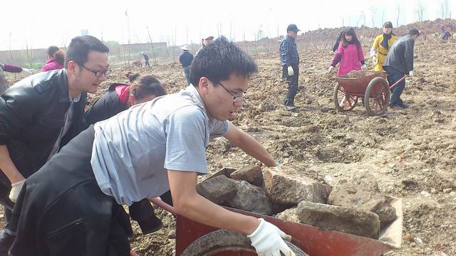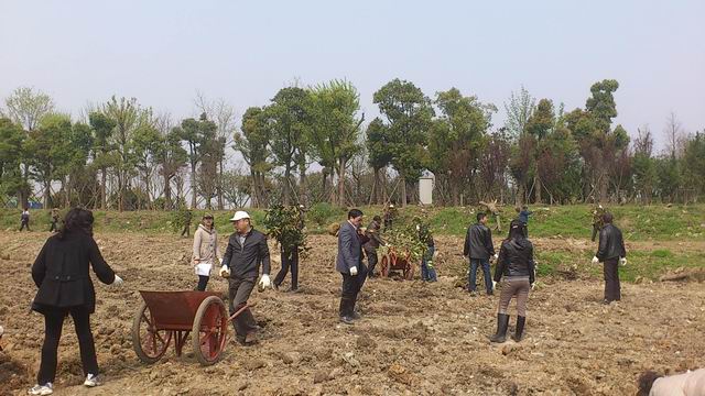 在国博中心苗圃基地绿化现场,建通公司300亩绿化工程正紧锣密鼓实施。为协助现场施工,赶在下雨前完成场地平整工作,3月21日中午,建通公司所属机关、检测公司和物业公司的全体员工来到国博中心,利用中午休息时间,清理现场垃圾和碎石。辛勤的汗水汇成大家共同的心愿“为美丽武汉播下一片绿,为幸福生活留下一片希望和憧憬!”