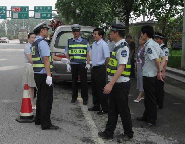 邓主任一行来到稽查四中队位于长丰桥的联合执法点,与稽查队员和执勤民警亲切交谈,了解、掌握联合执法现场的实时工作动态。对炎炎烈日下,稽查队员们顶着高温认真履行通行费稽查职责的敬业精神给予充分肯定,并送上防暑降温慰问物资,嘱咐队员们在高温、紧张的工作之余,注意身体健康。