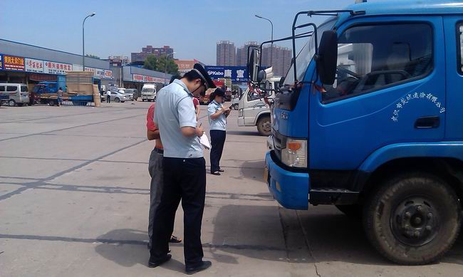 7月26日,稽查大队调集4个稽查中队、7台稽查车、35名稽查队员在硚口区、东西湖区开展集中稽查行动。