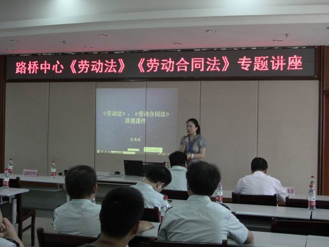 8月15日,路桥中心在六楼会议室举办《劳动法》《劳动合同法》专题培训会,特邀武汉市人力资源和社会保障局政策法规处彭燕娥处长作专题辅导。中心各单位(部门)负责人、三级单位负责人参加了培训活动。会议由中心副主任黄文红主持。