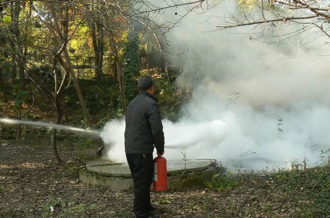 检查中,山庄组织了一次初级火灾消防演练。大火一着,山庄一人负责打开消防栓、一人肩扛消防水袋、一人手拿消防枪头,一人手拿灭火器,对准火苗,不到2分钟,大火即被扑灭,安全演练工作完满结束。