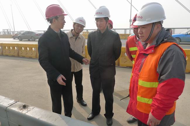 12月7日上午,路桥中心主任邓耀光、副主任郑欣利用周末时间,检查了晴川桥、长江二桥维修工程情况。