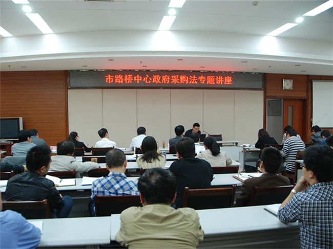 为加强政府采购政策法规的学习,加大路桥中心贯彻落实《政府采购法》工作力度,2014年4月10日下午,路桥中心举办《政府采购法》专题培训,邀请武汉市财政局政府采购办主任冯绮授课。中心领导班子成员、机关各部门负责人、二级单位行政负责人及各单位部门相关人员50余人参加了培训。
