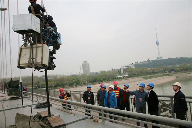检查人员沿线查看了晴川桥全桥防腐涂装、吊杆缠包带更换等项目施工,听取了业主项目部、施工单位、监理单位关于工程推进情况的汇报。邓耀光主任在充分肯定工程施工质量和现场安全文明施工的同时,强调晴川桥是我市地标性建筑,此次施工是在不封闭交通的情况下进行,参建单位在施工中务必采取科学的措施方案,实行精细化管理,在确保施工质量和施工安全的同时,要密切关注天气变化,合理安排工程进度,争取在5月底之前竣工。