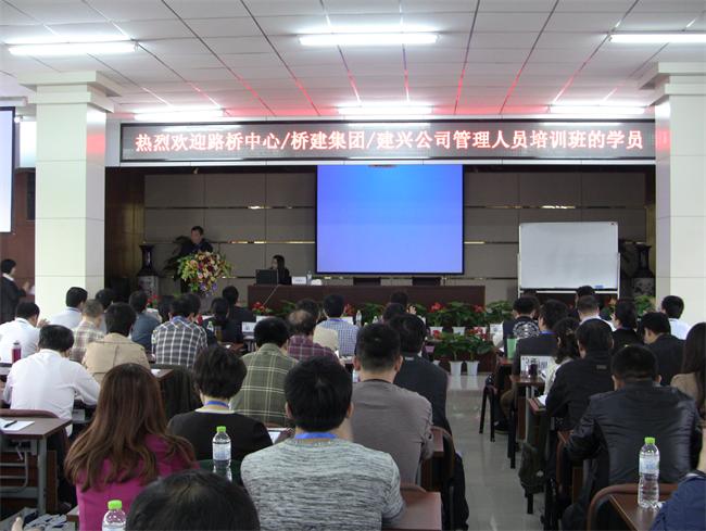 本次培训由路桥中心、桥建集团共同组织实施,建兴公司也派员参加了培训。路桥中心纪委书记赵凯出席开学典礼并致词。赵书记要求各位学员要利用这次学习机会,以谦虚的求学心态,积极的求学作风,认真学习,在学习过程中不断充实现代管理知识,自我升华,同时要求自觉遵守各项教学规章制度。
