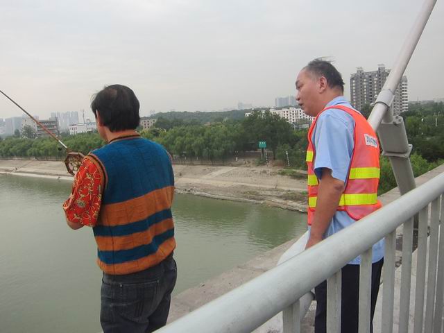 月湖桥位于人口相对绸密的闹市中心,主桥拉索段锚固区的检修平台呈开放型,进入秋季以来,许多爱好钓鱼的市民习惯到处垂钧、逗留,引来过往行人围观,严重影响了桥面机动车道、人行道的畅通,垂钓市民扔掉的垃圾,严重污染桥面环境卫生,同时很容易发生市民坠河危险情况。管理所针对存在的安全隐患,立即采取积极有效的管理措施保障。一是加强思想认识,保证管理责任落实。制定《关于加强对桥区市民垂钓行为管理的紧急通知》,利用岗前会形式,进一步强化职责和责任,杜绝对此事件不查不管的“自由式”管理现象的发生。二是加强巡检执行质量,保证桥梁安全。管护人员每天除保证对桥梁设施常规性巡检次数外,还重点加强对主桥锚固区,这些容易被市民用来垂钓的部位进行巡查,发现问题及时处理,及时制止,站在维护市民自身安全角度轮番进行解释耐心劝离。三是加强监控巡视力度,保证道路通畅。对主桥拉索段实施定点监控,一旦发现聚集众多市民垂钓,监控人员立即电话报警,请求交警支持,协同管理,做好记录。截止目前,已劝离垂钓市民14次,一定程度上制止了市民上桥垂钓现象。