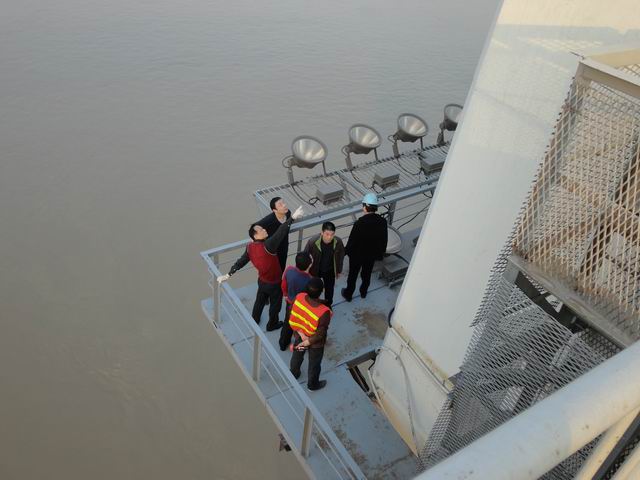 最后,郑主任在桥梁重点部位进行了安全检查。他沿着大桥检测通道下到钢箱梁内听取了王解元总工程师现场讲解桥梁知识,随后又到大桥2#主塔内进行了现场查勘。