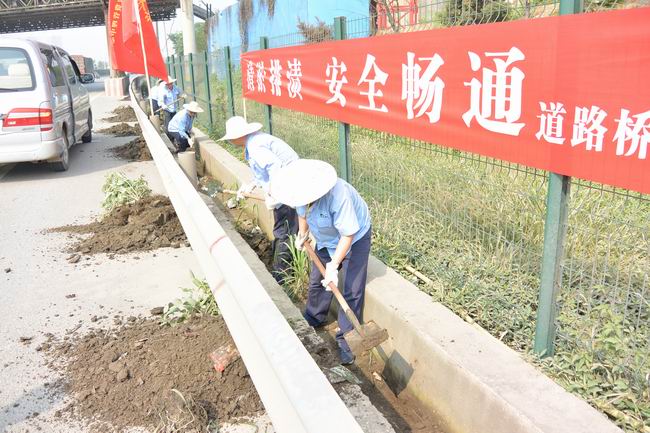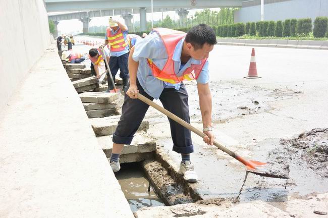 每年5月下旬,武汉市进入“梅雨季节”。为确保“梅雨季节”三环线路段少积水、不积水,按照中心办公会要求,道路桥梁管理处自行组织实施三环线清淤工作。为做好清淤工作,该处组织人员对三环线全线进行踏勘,做到“三定”,即定位:确定易积水路段;定量:测算工作量(其中边沟5140米、横管32条、清除淤泥总计1462立方);定员:处所属7个管理所分片包干。