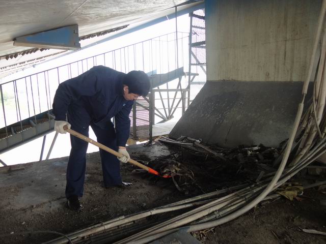 由于该处较隐蔽,长期以来因施工、桥上洒水作业的渗漏等原因,积累了大量垃圾。为确保桥梁结构安全,管理所组织班组人员对该处卫生环境进行了综合整治,各班组人员积极响应,带上铁锹和扫帚,从桥面爬到横梁上,有的队员克服年纪大、恐高的心理也投入到活动中。目前,已清除暴露垃圾3吨。