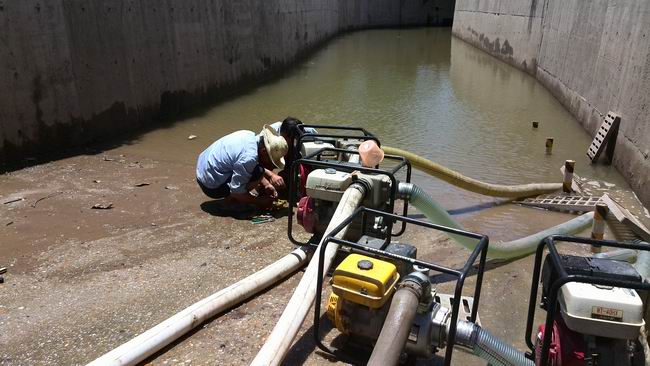 7月6日,武汉市出现强降暴雨天气。三环线小河桥下穿通道由于降雨量大、地势低,周边雨水汇集至此,渍水较深。长丰桥管理所根据暴雨应急预案,立即组织人员调动5台移动泵,出动人员13人,24小时不间断进行抽排水。排水过程中,该所安排2名工作人员游入渍水中,保证发动泵机正常运转。