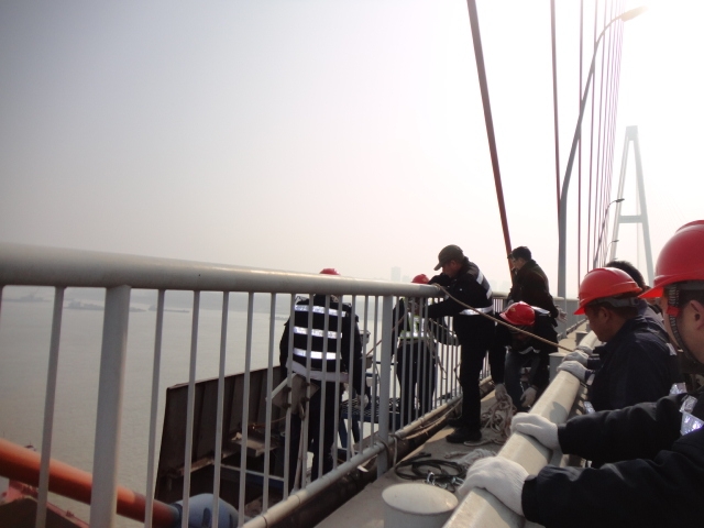 近日,白沙洲大桥桥涵灯移位工作有条不紊地展开。尽管艳阳高照,但寒风从江面上吹过,似乎透过衣服直接吹入骨髓一般,但大家积极配合,警示锥形桶、警示牌已将施工现场进行封闭,起吊、移位、焊接,敷设电缆有序进行着,经过3个多小时的维修施工,终于完成了白沙洲大桥上游桥涵灯30米、下游桥涵灯80米的移位,共敷设电缆130米,焊接固定点4个。