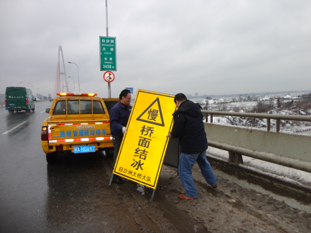 连日来,我市因受全国南方寒潮影响,持续低温,昨晚,我市迎来今年以来的又一场雨雪天气,市城投集团公司所属路桥中心为确保所辖桥梁通行畅通,市民安全出行,及时启动融雪防冻预案,连夜组织人员车辆,对所辖7座桥梁共17公里路段进行撒盐化冻,所辖桥梁通行车道全部开放,交通秩序正常,未受雨雪天气影响。昨晚,市路桥中心共使用融雪剂9吨、工业盐29.6吨,96人、25台车通宵作业,化冻面积约56万平方米,铺设人行道防滑草袋930条,并在桥面放置15块安全警示标牌,提示过往车辆谨慎慢行。