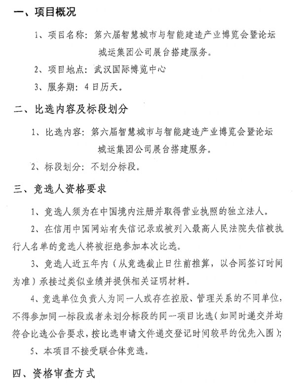 第六届智慧城市与智能建造产业博览会暨论坛永利娱城公司展台搭建服务比选公告